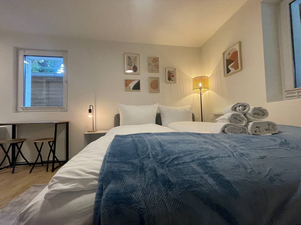 Willkommen in unserer Vorstadtoase! Erholung und Qualität stehen im Fokus. Unser modernes Apartment bietet ein Queen-Size Bett, viel Stauraum, eine moderne Küchenzeile mit Nespresso-Maschine, Toaster, Wasserkocher & Geschirr für zwei Personen. Das moderne Bad mit bodengleicher Dusche vervollständigt Ihren perfekten Aufenthalt. Buchen Sie jetzt!